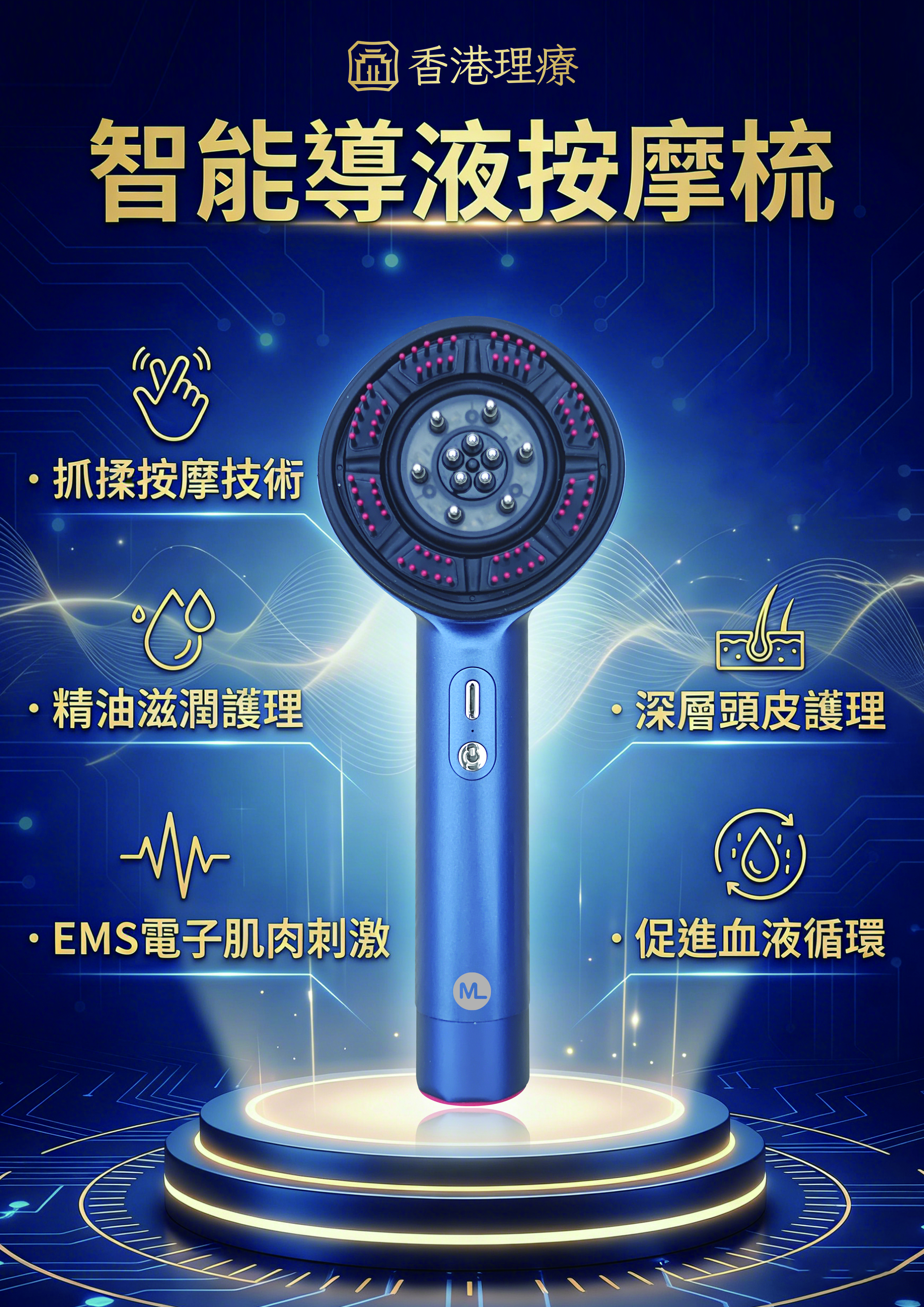 智能導液按摩梳以「梳護一體,科技養髮」為核心,將傳統梳髮升級為智能護理體驗,讓頭皮與髮絲同步獲得深層滋養與放鬆。