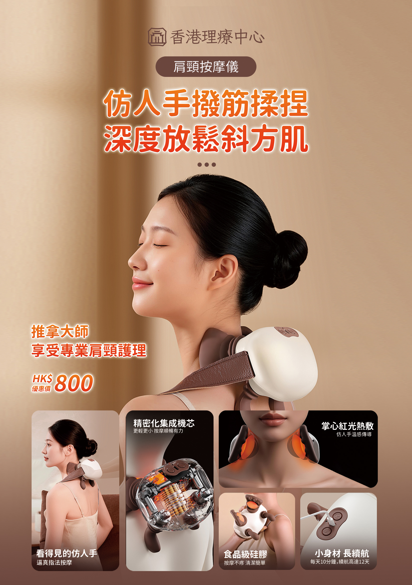 【香港理療中心】肩頸按摩儀,就像隨身推拿大師,為您帶來真實仿人手揉捏撥筋體驗!
